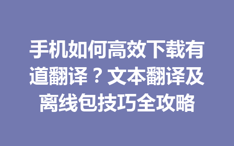 手动安装离线包:打开有道翻译应用,通过设置功能手动添加离线包,这将使应用无网络限制地进行翻译。